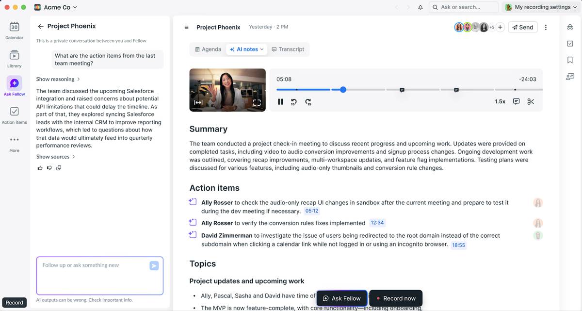 Fellow extends beyond transcription into comprehensive meeting productivity: