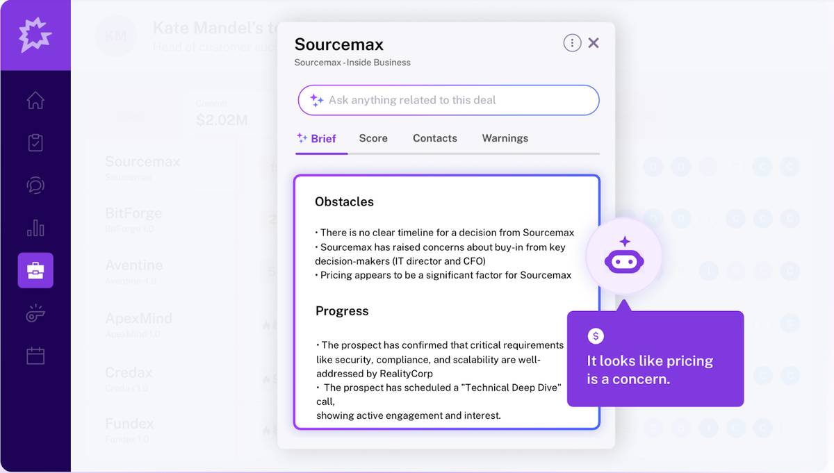 AI Tracker: Monitors keywords, competitors, objections (35% higher win rates)