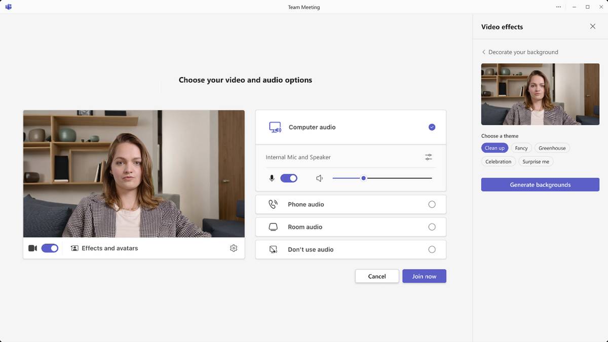 To try it, turn on your camera on the pre-join screen, open ‘Effects and Avatars’, select ‘Video effects’, then choose ‘Decorate’ and apply a theme. If you don’t see the Decorate option, your account or Teams version does not support this feature.