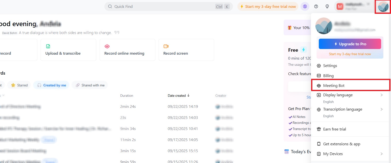 Open Notta, select your profile in the top right corner, and choose ‘Meeting Bot’ from the menu. Enter the name you want the bot to use and save your changes. The bot will display the new name the next time it joins a Teams call.