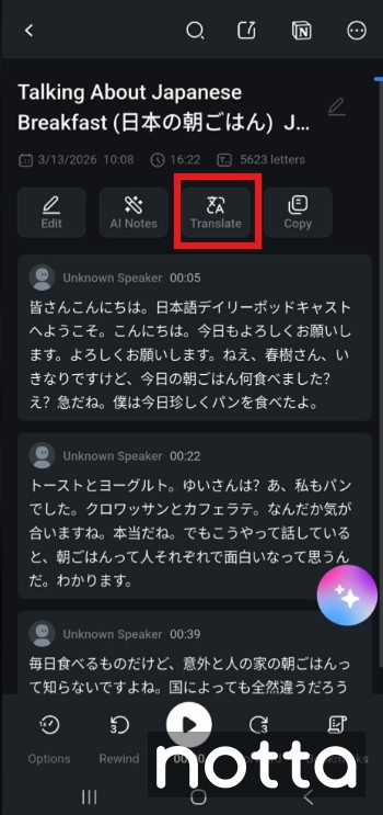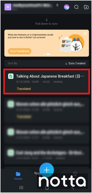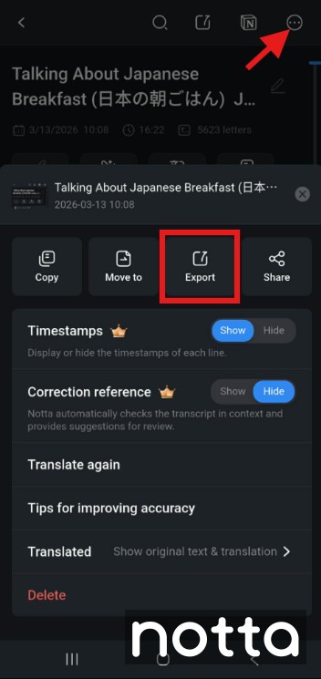 Here’s how to export the translated transcript from the Notta app on mobile.
