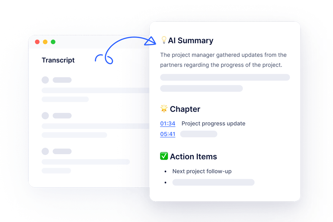 Use Smart Al Notes to automatically summarize your recordings. It captures key decisions, action items, and important takeaways, turning long audio into clear, concise information.